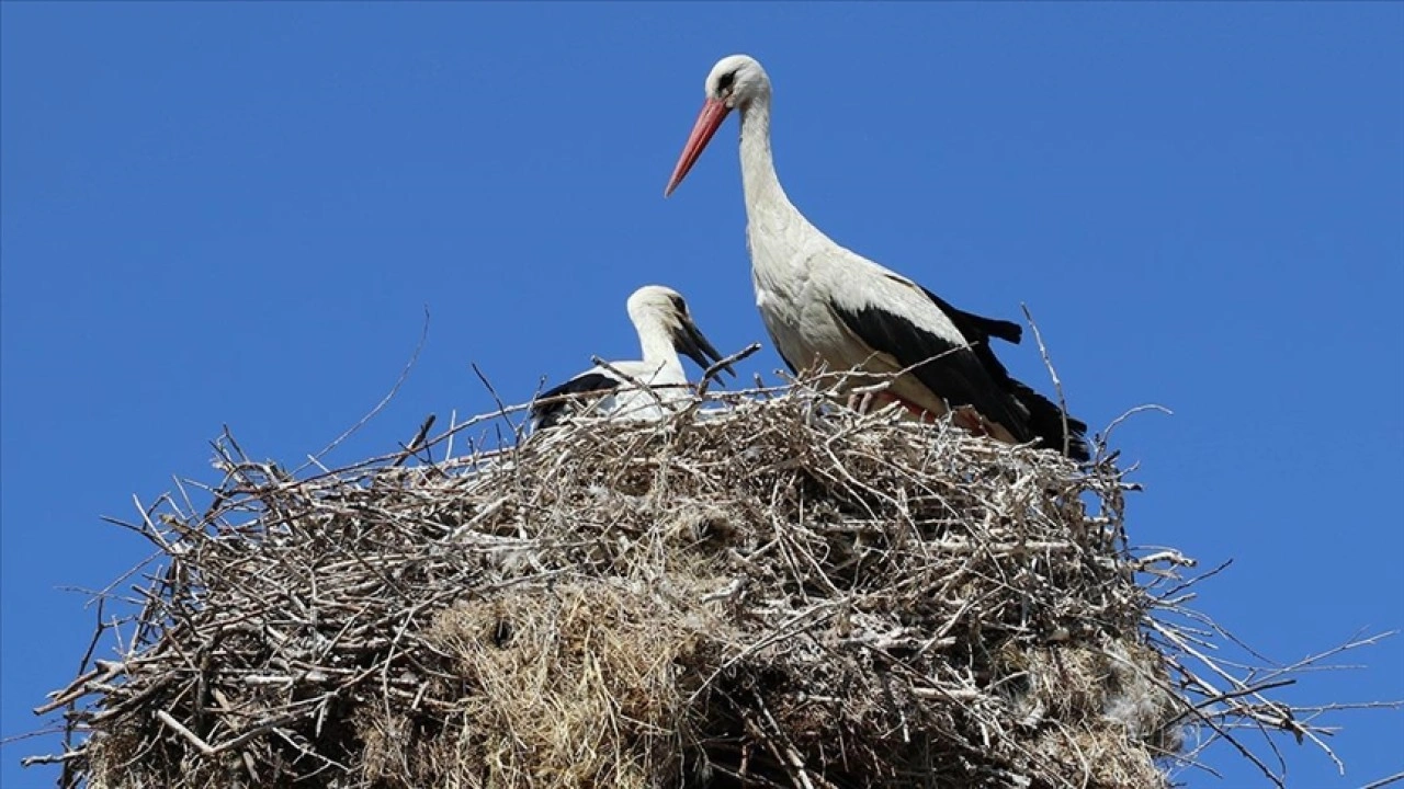 "Leylekli köy" adıyla anılan Ortaova köyünde farklı bölgelerdeki elektrik direklerine yaptıkları yuvalarda yaşayan leylekler, hem köy halkının hem de ziyaretçilerin ilgisini çekiyor.