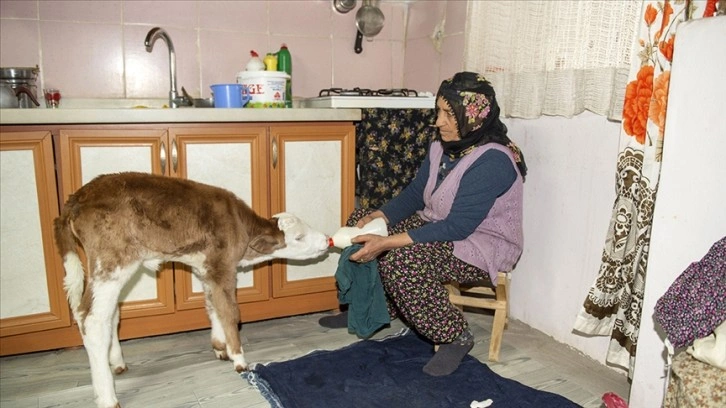 İki hafta önce dünyaya gelen ve "Şere" adını verdikleri buzağıya sağlık sorunları nedeniyle doğduğu günden bu yana evde baktıklarını anlatan Çakmak, "Biberonuna annesinden sağdığımız sütü dolduruyoruz ve günde 5 defa besliyoruz. Bir bebekten farksız ve evin içinde çocuk gibi oyunlar oynuyor. Biz de onu izlerken gülüyoruz." dedi.