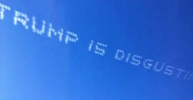 ABD’de müslüman ve mülteci karşıtı söylemleriyle gündeme gelen Başkan aday adayı Donald Trump’a karşı kampanya yürüten milyoner Stan Pate, California’da yeni yıl kutlamaları sırasında gökyüzüne “Amerika Harika, Trump İğrenç” yazdırdı.