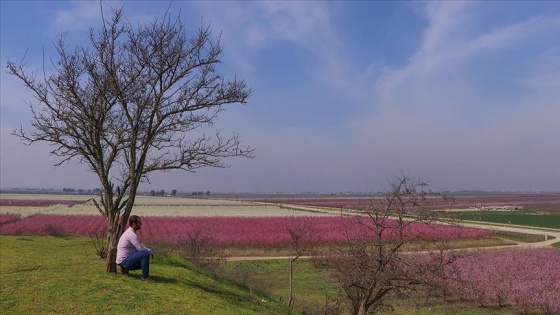Pembe ve beyaz renkli çiçeklerin ağırlıklı olduğu nektarin ve erik ağaçları, görsel bir şölen sundu.