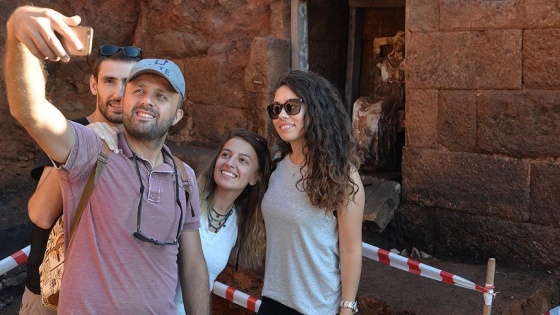 Kalede heykel bulunduğunu öğrenen binlerce kişi, eseri daha yakından görebilmek için kazı alanına geldi.