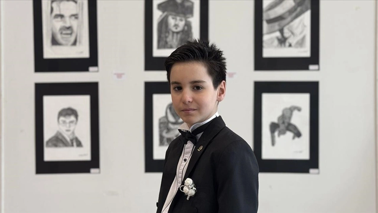 Kısa sürede gerçekçi kara kalem portreler çizebilen minik ressam, geçen günlerde gelen bir teklif üzerine ilk kişisel sergisini de açtı.