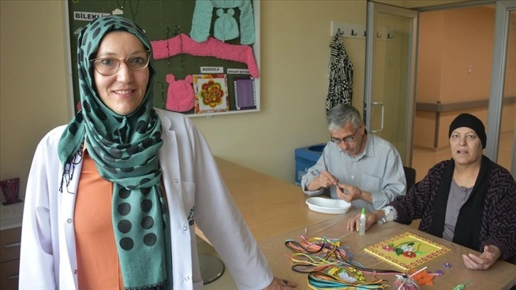 Hastalar yaptıkları tespih, takı, telefon ve gözlük aksesuarları, atkı, bere, ahşap boyama gibi el emeği ürünleri yakınlarına ve çevrelerindekilere hediye ediyor.
