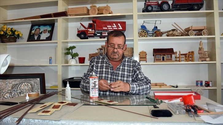 Tasarladığı maketleri, atık tahta, karton ve ağaç parçaları kullanarak yaptığına dikkati çeken Lüy, "Sanayiden aldığım atık parçaları eve getiriyorum ve burada şekillendiriyorum. Kamyon ve traktörleri ahşaptan yapıyorum. Ev ve camilerde ahşap ve atık mukavva ile kartonları kullanıyorum." dedi.