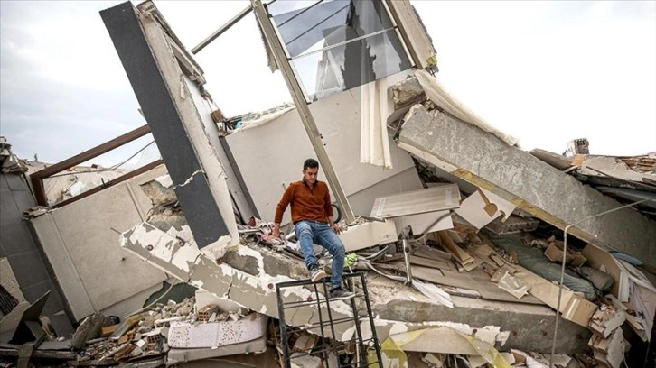 Can kaybı olmayan binada ailesiyle yaşayan lise öğrencisi Dikmen, enkaz kaldırma çalışmalarının sürdüğü bölgedeki apartmanda eşyalarını aradı.