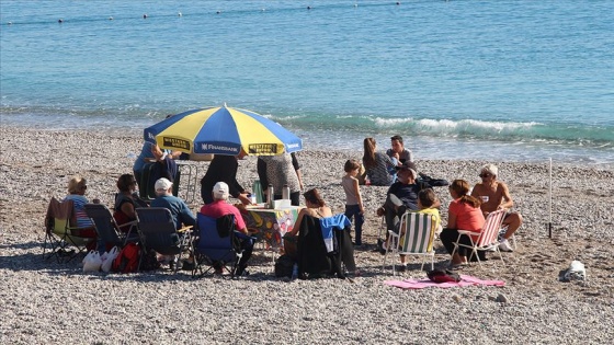 Havanın güneşli olmasını fırsat bilen vatandaşlar, Konyaaltı Sahili'nde yürüyüş yaptı, plajda güneşlendi ve yüzdü.