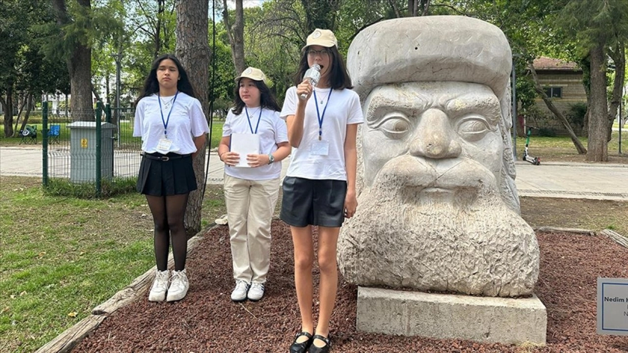 Bu kapsamda Karaalioğlu Parkı'nda buluşan öğrenciler, gruplar halinde tarihi yapıların yanında durarak, ziyaretçileri kentin simgelerini İngilizce, Almanca ve Rusça anlattı.