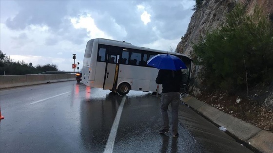 Antalya'nın Konyaaltı ilçesi Topçam mevkiinde Adem Şahan'ın kullandığı 07 KR 931 plakalı servis otobüsü, yağışın etkisiyle yoldan çıkarak yamaca çarptı. Kazada, ilk belirlemelere göre sürücü dahil 17 kişi yaralandı.