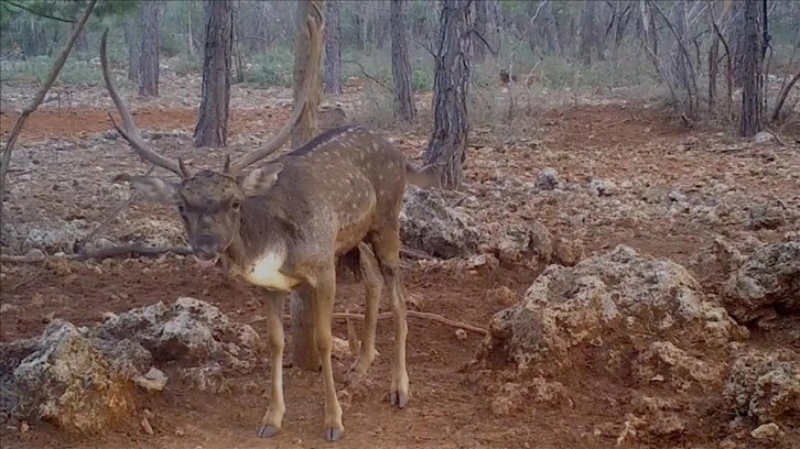 Antalya'daki ormanlık alanlarda yaşayan alageyiklerin boynuzlarını kullanarak birbirleriyle mücadele etmeleri ve kükremeleri fotokapana yansıdı.