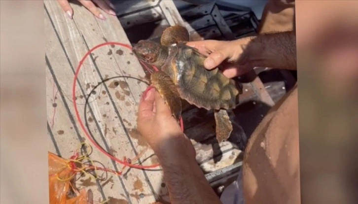 Antalya'nın Alanya ilçesinde, denizde misinaya takılan caretta caretta yavrusu, tekneciler tarafından kurtarıldı.