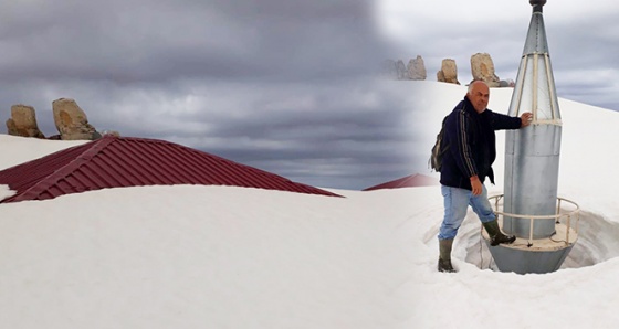 Yüksek olması nedeni ile kışın aşırı kar yağışına maruz kalan yaylada birçok evin sadece çatı kısmının çok az bir bölümü göründü.