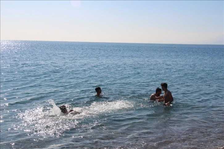 Denizde üşümediğini belirten Teker ise "Hava sıcak, su da sıcak. Bu havayı denizde yüzerek değerlendirelim istedik. Çok eğleniyoruz" dedi.