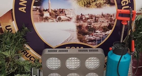 Antalya Emniyet Müdürlüğü Narkotik Suçlarla Mücadele Şube Müdürlüğü görevlileri, Kepez ilçesi Duraliler Mahallesi’nde bir ikamette esrar yetiştirildiği bilgisi üzerine operasyon düzenledi. Narkotik Suçlarla Mücadele Şube Müdürlüğü ekipleri eve düzenledikleri operasyonda daralı halde 1 kilogram 80 gram esrar, 223 kök kenevir bitkisi, kenevir yetiştirmek üzere kullanılan ısı, ışıklandırma, havalandırma sistem gereçleri ve solüsyonlar, 1 adet 7,65 çapında Vzor marka silah, 1 adet şarjör, 24 adet 7,65 çapında fişek, 1 adet 9 mm çapında Tariq marka silah, 1 adet şarjör, 9 mm çapında 78 adet fişek ele geçirdi.
