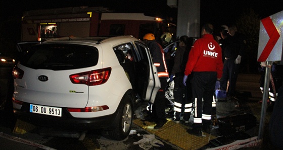 Olay, Ankara'nın Yenimahalle ilçesi Mevlana Bulvarı üzerinde meydana geldi. Edinilen bilgilere göre, Mevlana Bulvarı üzerinden İskitler istikametine seyreden 06 DU 9513 plakalı otomobilin sürücüsü bilinmeyen bir nedenle Beşevler istikametine dönüşte bulunan karayolları levhasına çarptı. Çarpmanın etkisiyle araçta bulunan 3 kişi yaralandı. Yaralılardan E.E. isimli kadın ise araçta sıkıştı.
