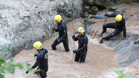 Arama kurtarma timleri, Çamlıktepe Mahallesi'nden geçen Kara Dere'nin yanı sıra kaya dipleri ve çalılık alanlarda tarama yapıyor.