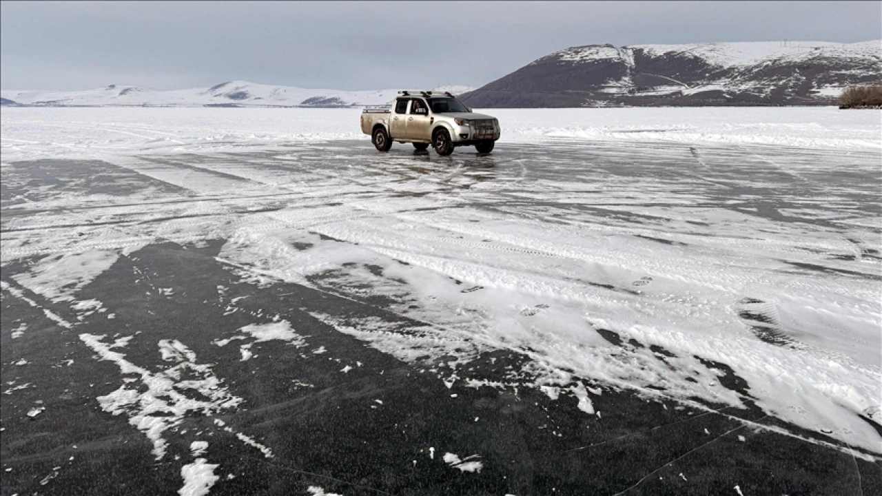 Sürücü Gencay Koçak, AA muhabirine, ilk kez aracıyla buzla kaplı göl üstüne çıktığını söyledi.