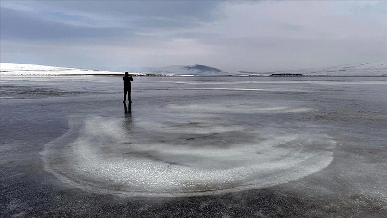 Göl kıyısındaki Kenarbel köyü muhtarı Serkan Akgün, gazetecilere, soğukların bölgede etkili olduğunu belirterek, "Bu yıl havalar aniden soğudu ve gölün yüzeyi de buzla kaplandı." dedi.