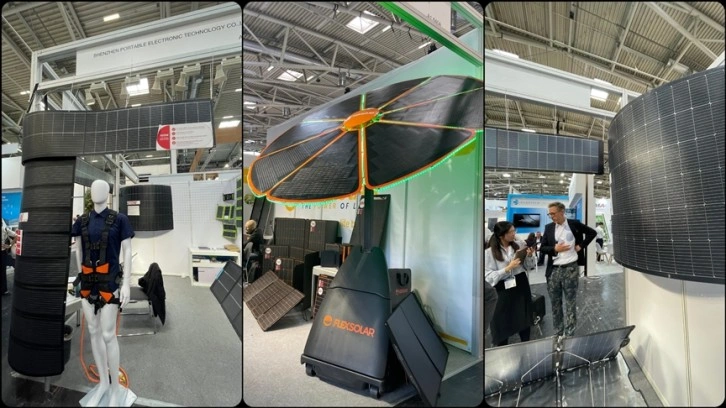 Intersolar Avrupa Güneş Enerjisi Konferans ve Fuarı'nda sergilenen farklı büyüklük, esneklik, renk, verimlilik ve dayanıklılığa sahip fotovoltaik güneş panelleri, sektör temsilcileri, santral sahipleri ve güneş enerjisini günlük hayatta daha fonksiyonel kullanmak isteyen müşterilerden ilgi görüyor.