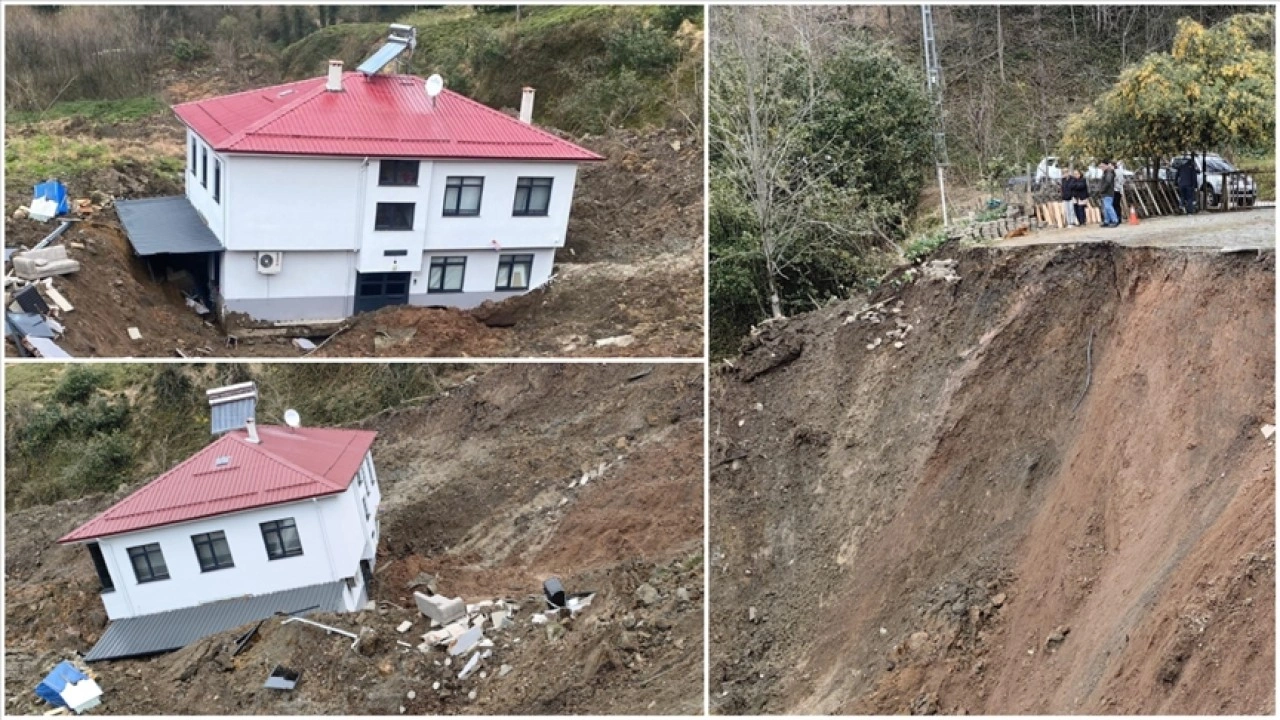 Heyelanın meydana geldiği alanın çevresinde derin çatlaklar oluştuğu, sürüklenen evin yapı bütünlüğünü koruduğu görüldü.