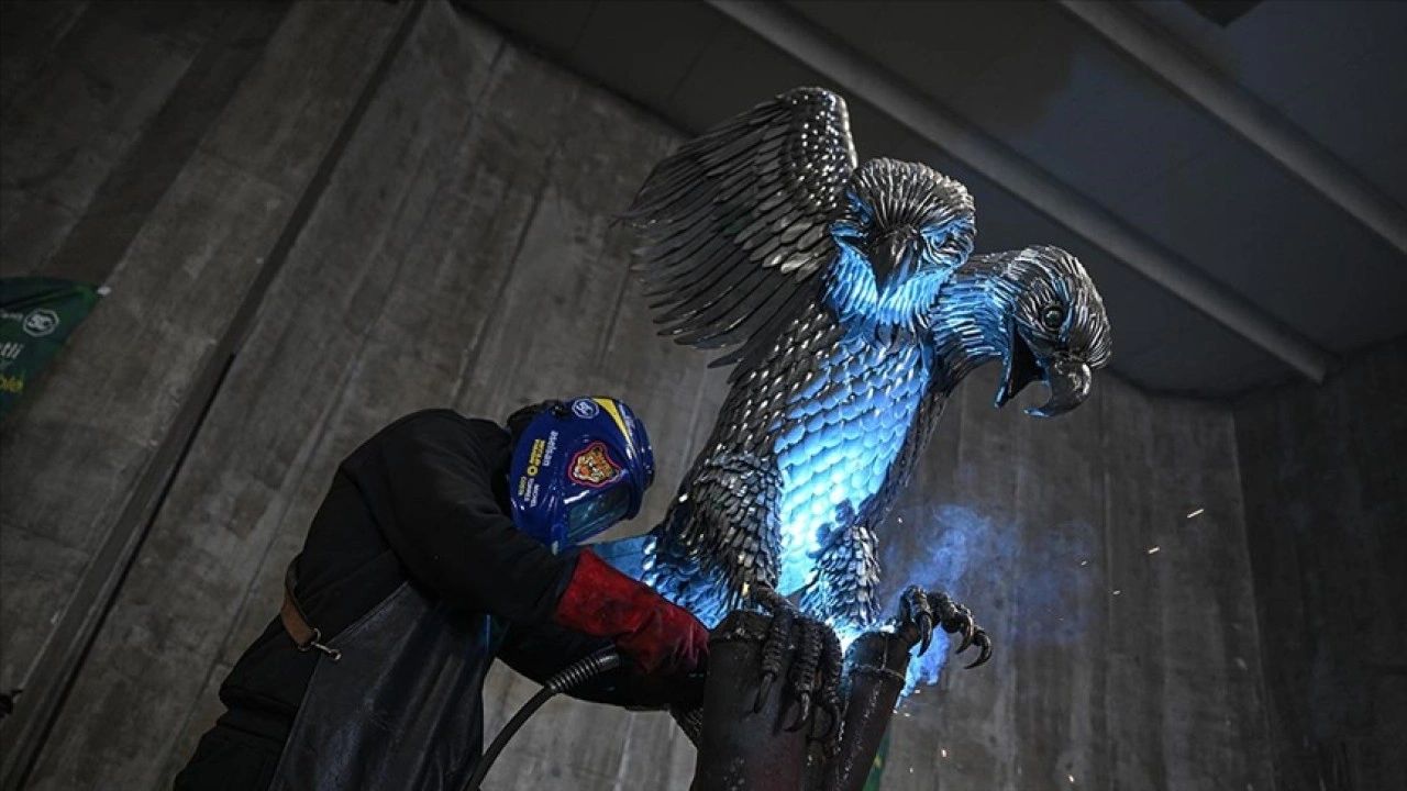 AA ekibi tarafından görüntülenen sanat koleksiyonunda, ASELSAN'ın ürettiği ürünlerden arta kalan malzemeler, dünyanın farklı kıtalarından bir araya gelen sanatçıların elinde sanat eserlerine dönüştürülüyor.