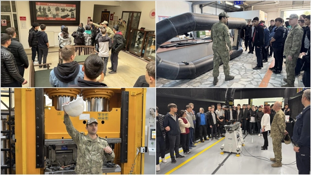 Fabrikayı gezen öğrenciler ise üretilen askeri malzemeleri yerinde görme fırsatı buldu.