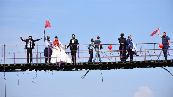 Köprü üzerinden insanların yanı sıra bazen de araçların geçtiğini belirten Gelekçi, "Kimsenin aklına bu asma köprü üzerinde düğün yapılacağı gelmezdi. Bizim aklımıza geldi, böyle bir çılgınlık yapalım deyip asma köprü üzerinde düğün yapmaya karar verdik." diye konuştu.