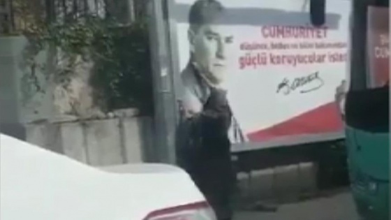 Sosyal medyada yoğun ilgi gören görüntüde, kent merkezindeki bir bilboarda asılan afişteki Atatürk fotoğrafının kirlendiğini gören yaşlı bir kadının, mendille fotoğrafın üzerini temizlemesi yer alıyor.
