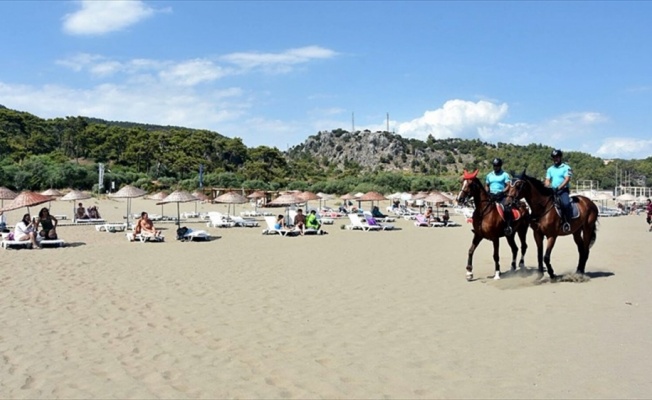 Sarıgerme Jandarma Karakol Komutanlığı bünyesinde oluşturulan geçici at merkezinde kalan atlı jandarmalar, Sarıgerme sahilinde ve plaj içinde devriye gezecek.