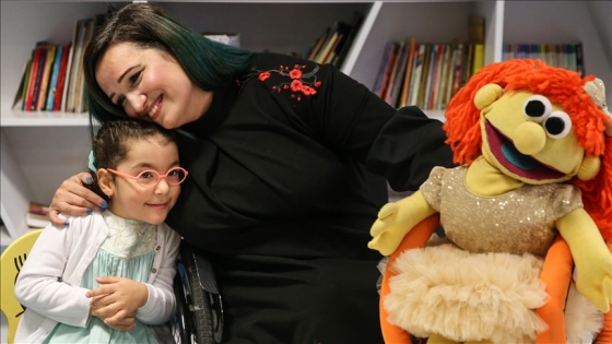 Bebekken geçirdiği hastalık sonrası engelli kalan 7 yaşındaki Zeynep Yiğit de sanatevine gelerek Elibol'la birlikte çalışmalar yapıyor.