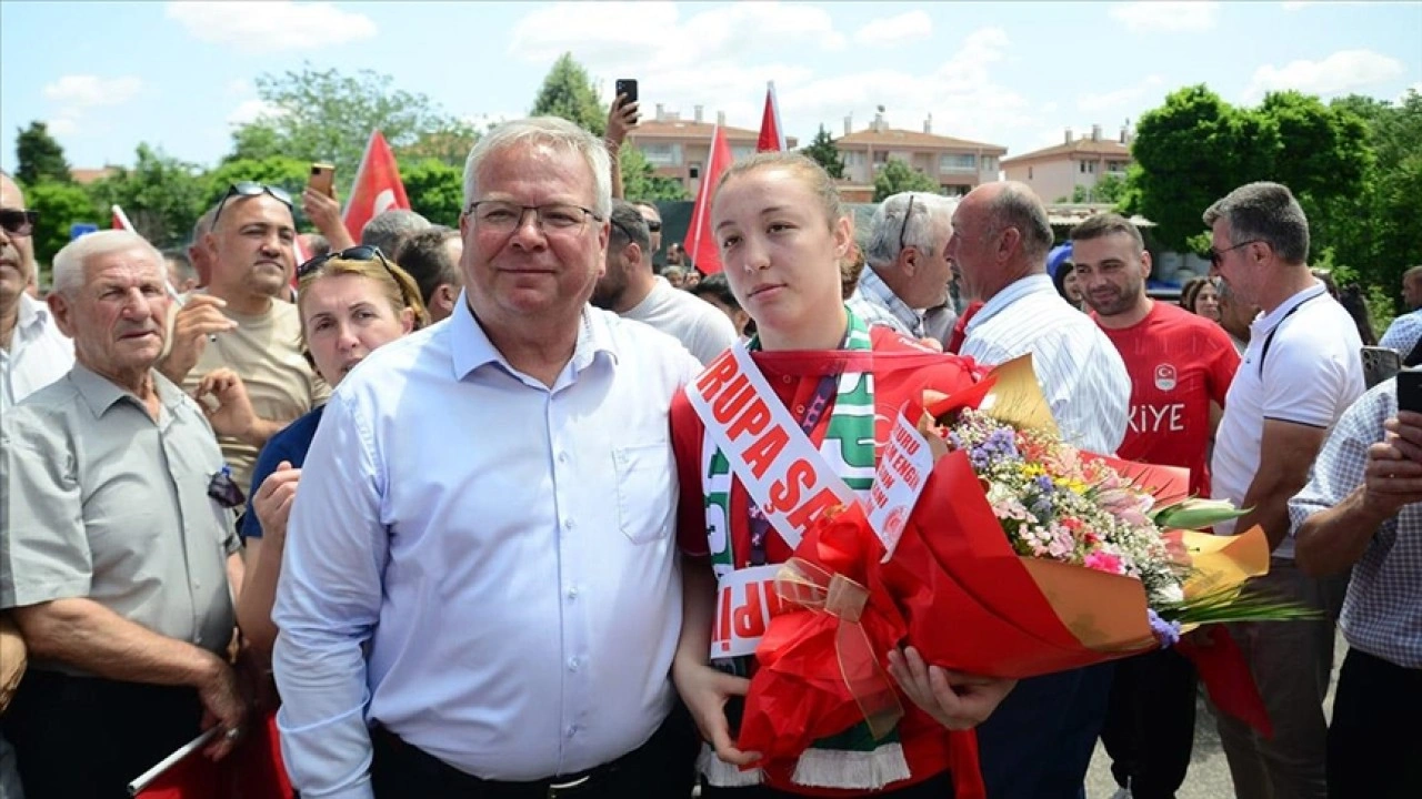 Milli güreşçi için memleketi Süloğlu'nda karşılama programı düzenlendi.