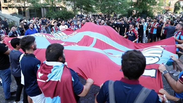 Ellerinde bayraklar ve Trabzonspor formalarıyla meydana gelen taraftarlar tezahüratta bulunup horon çekti.