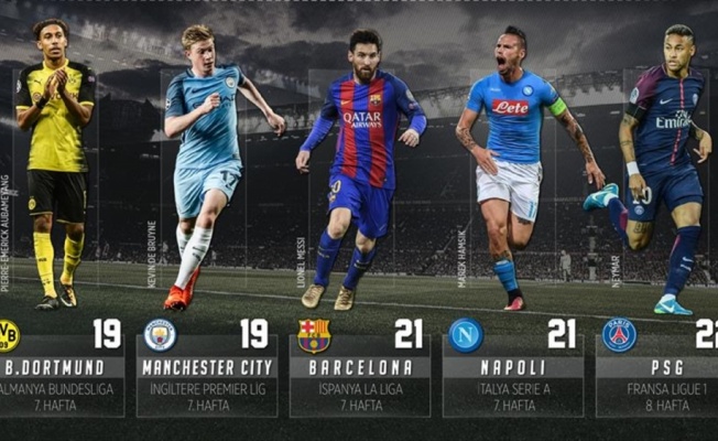 İngiltere'de Manchester City, İspanya'da Barcelona, Almanya'da Borussia Dortmund, İtalya'da Napoli, Fransa'da ise Paris Saint-Germain (PSG), puan tablosunun zirvesinde yer aldı.