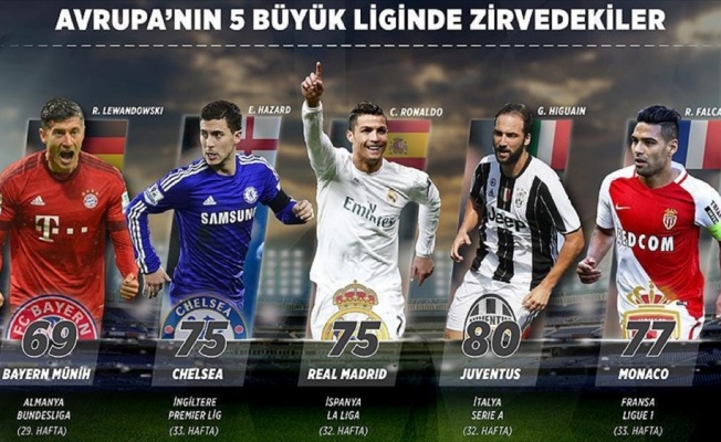 İngiltere'de Chelsea, İspanya'da Real Madrid, Almanya'da Bayern Münih, İtalya'da Juventus ve Fransa'da Monaco, zirvedeki yerlerini korudu.