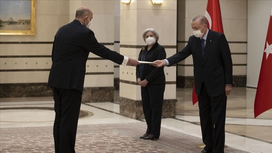 Cumhurbaşkanlığı Külliyesi'ndeki kabulde, Büyükelçi Armitage, Erdoğan'a güven mektubu sundu.
