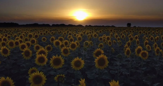 Tekirdağ Odayeri mevkinde gün batımının eşsiz manzarasıyla ay çiçeği tarlalarının havadan görüntüsü kartpostallık manzaralar ortaya çıkarttı.