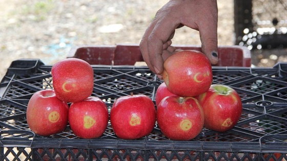 Türkiye'nin önemli meyve üretim ve ihracat merkezlerinden Afyonkarahisar'ın Sultandağı ilçesinde bir üreticinin, "gülen yüz", "ay yıldız" simgeleri ile "I love you" yazısı yerleştirdiği elmalar ilgi görüyor.
