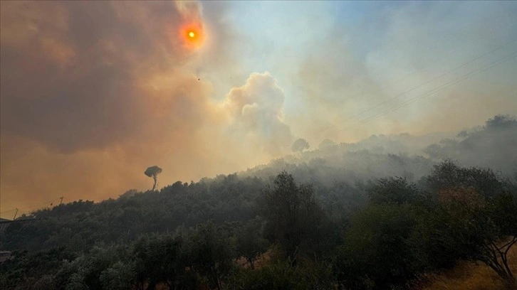 Aydın Germencik'te zeytinlik ve ormanlık alanda çıkan yangına müdahale ediliyor