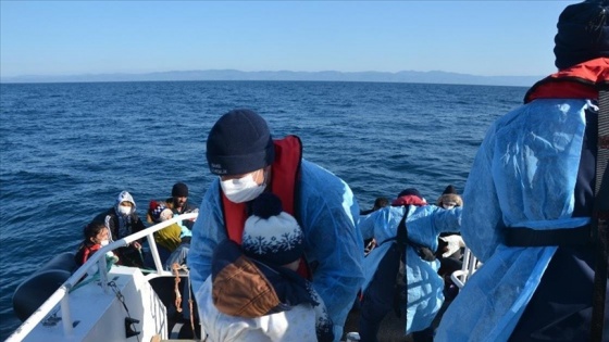 Midilli Adası'na gitmeye çalışırken Yunanistan sahil güvenlik unsurlarınca Türk kara sularına itildiği öğrenilen 55 sığınmacı, Cunda Adası'ndaki Sahil Güvenlik Komutanlığı Merkezine getirildi.