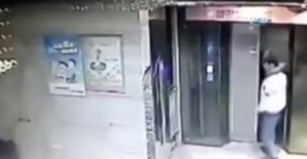 Asansörün kapısı aldığı darbenin etkisiyle kırıldı. Eserine bakma için asansöre yaklaşan şahıs, bir anda boşluğa düştü.