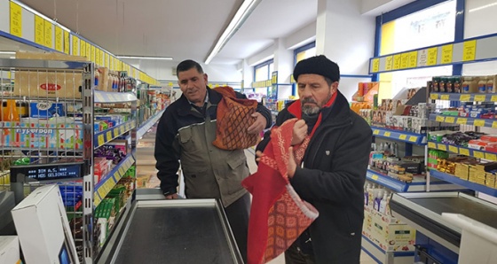Babadan kalma heybelerle market alışverişi yaptılar