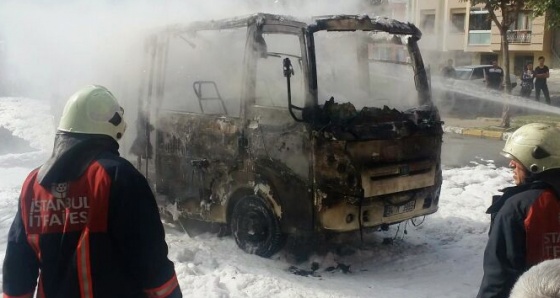 Bağcılar-Habipler hattında çalışan minibüsün sürücüsü bu sabah saatlerinde Bağcılar Güneştepe Tramvay Durağı'nda yolcu almak için beklemeye başladı. Bu sırada bilinmeyen bir nedenden minibüste yangın çıktı. Minibüs sürücüsü alev topuna dönen minibüsten kendini aşağıya atarken, vatandaşlar olay yerine itfaiye çağırdı. Alev topuna dönen minibüste zaman zaman patlamalar yaşandı. Olay yerine gelen itfaiye yangına kısa sürede müdahale etti. Yaklaşık yarım saatlik çalışmanın ardından yangın itfaiye tarafından söndürüldü. Minibüs tamamen kullanılamaz hale gelirken, minibüste yolcu olmaması büyük bir faciayı önledi.