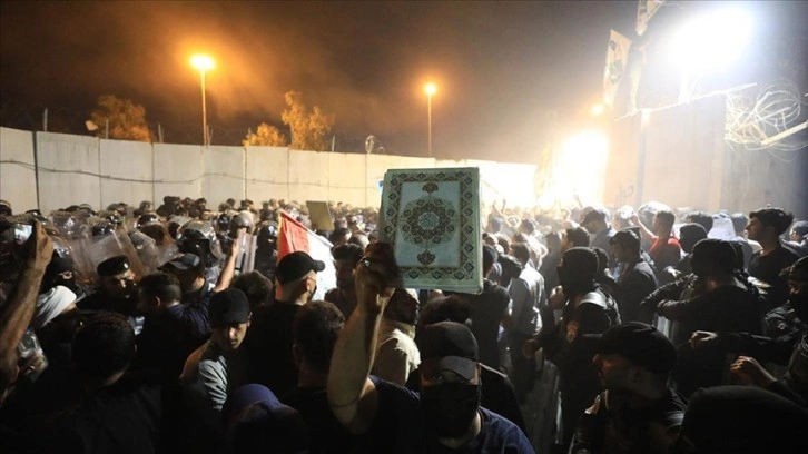 Sadr Hareketi yandaşları, İsveç Büyükelçiliği yakınlarına gelerek Kur’an-ı Kerim’e yönelik eylemleri protesto etti. Protestocular, İsveç Büyükelçiliği binasının bazı bölümlerini yaktı. Binadan siyah dumanlar yükseldi.