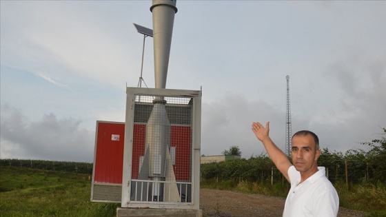 Şirketin ziraat mühendisi Mehmet Ali Sırma, şirket bahçelerine dolu yağmasını önlemek için bu cihazı aldıklarını söyledi.