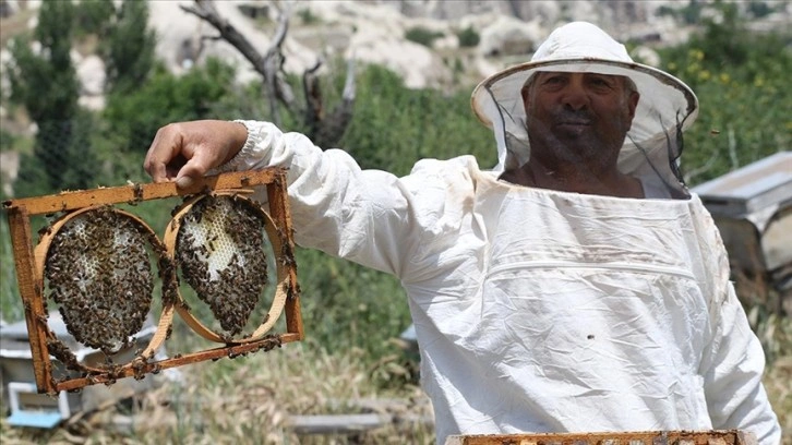 Kapadokya'da peribacalarıyla kaplı Güvercinlik Vadisi'ndeki onlarca kovanda arıcılıkla uğraşan 55 yaşındaki Ahmet Ciğerci, yaklaşık 30 yıldır Orta Anadolu'daki meslektaşlarına arı tedarik ediyor.