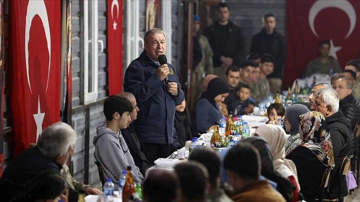 İftar sonrası konuşan Akar, "Bu toprakların bizlere vatan olması için gözlerini kırpmadan canlarını feda eden şehitlerimiz, tüm başarılarımızdaki aslan payına sahiptir. Onların hatıralarını yaşatmak boynumuzun borcudur." ifadesini kullandı.