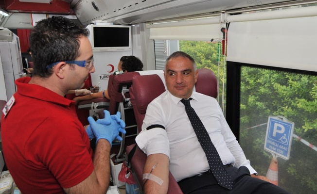 Kültür ve Turizm Bakanı Mehmet Nuri Ersoy’un isteği ile Bakanlığın Emek binası önüne ‘Kan Alma Aracı’ ile stant kuran Kızılay Kan Bankasına Bakan Ersoy da kan bağışında bulundu.