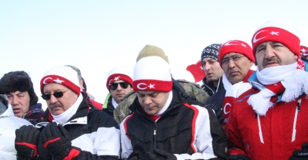 ’Şehitler ölmez vatan bölünmez’ sloganlarıyla sıfırın altında 15 derece soğukta düzenlenen zorlu yürüyüşe katılanlar 8 kilometre mesafede bulunan Yukarı Sarıkamış Mahallesi’ndeki Sarıkamış Şehitliği tören alanına geldi.