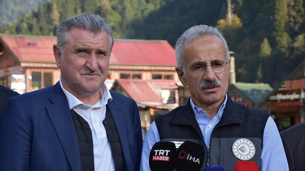 Gençlik ve Spor Bakanı Osman Aşkın Bak ile ulaşıma açılan Ayder Yaylası'na kara yolu ile giden Bakan Uraloğlu, yağıştan zarar gören bölgelerde incelemede bulundu.