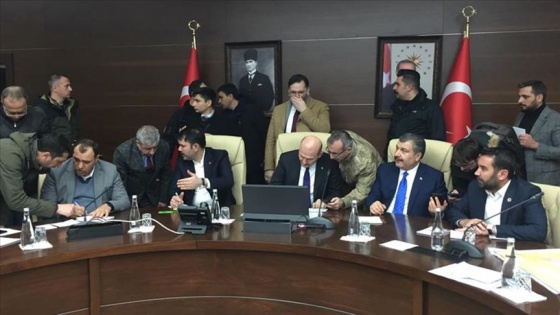 Merkez üssü Sivrice ilçesi olan 6,8 büyüklüğündeki depremin ardından incelemelerde bulunmak üzere kente gelen bakanlar Soylu, Kurum ve Koca, Elazığ Valiliğinde kurulan kriz merkezinde Vali Çetin Oktay Kaldırım ve diğer yetkililerden, depremin ardından yürütülen çalışmalara ilişkin bilgi aldı.