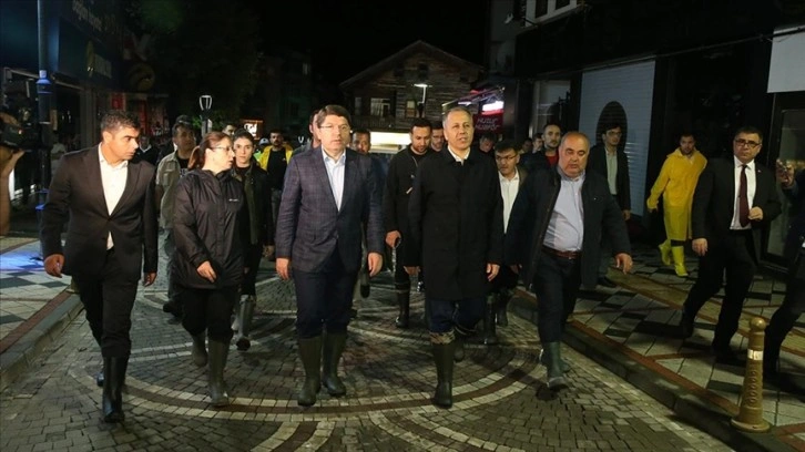 Tunç ve Yerlikaya, kent merkezinden geçerek Karadeniz'e dökülen Bartın Irmağı'nın sağanak nedeniyle taştığı bölgede inceleme yaptı.